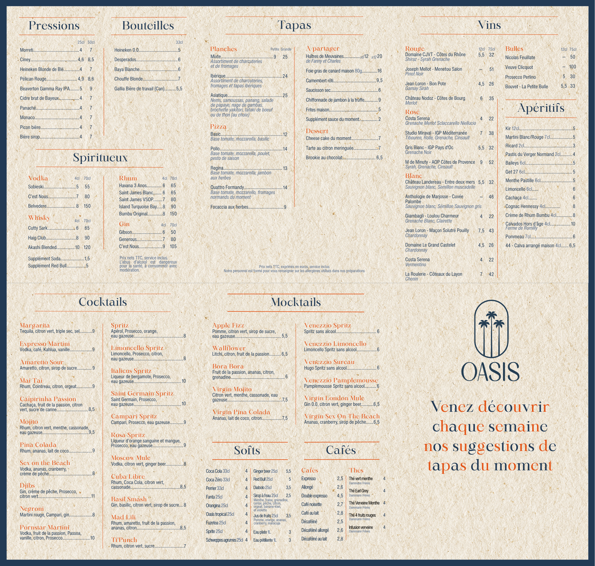 Découvrez notre offre variée de boissons et de tapas dans un cadre agréable.